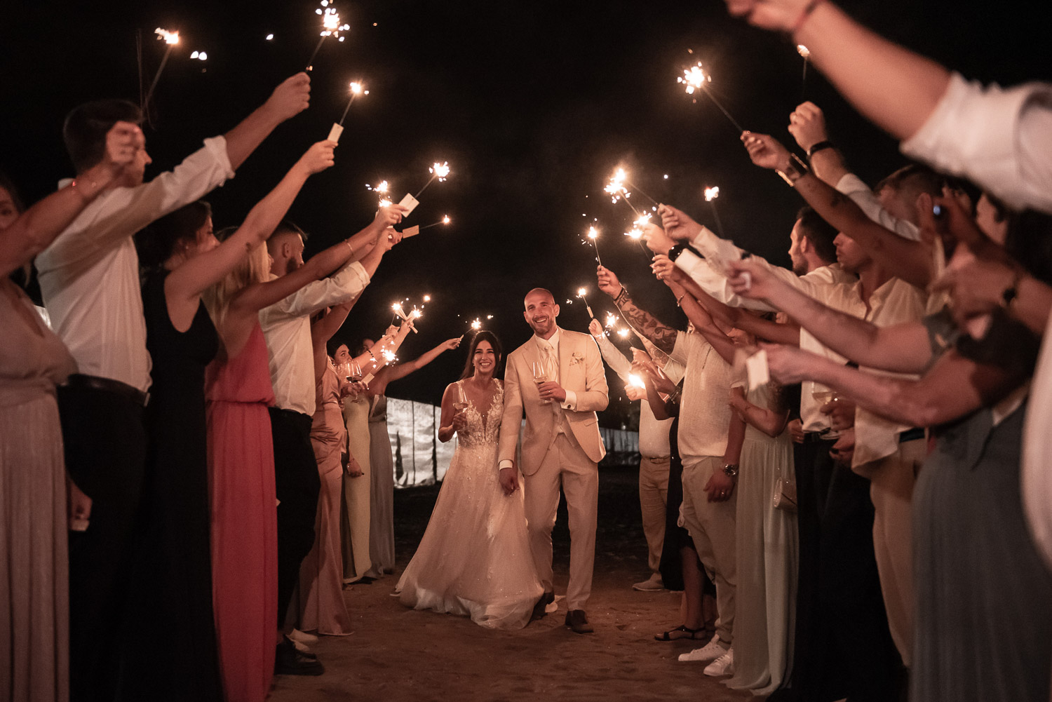 Dopo il sì, la festa è proseguita in un ristorante in riva al mare, dove la cena si è trasformata in un racconto fatto di sguardi, abbracci e risate illuminate dalla luce del tramonto.